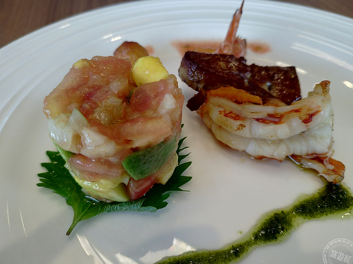 嫩煎鴨肝天使蝦佐波特酒燴蘋果(攝影:洪書瑱)