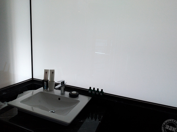 玻璃內有夾層,一個按扭開關秒起了隱私保護,不用拉簾(攝影:洪書瑱)