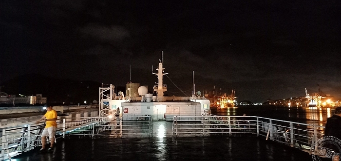 臺馬輪甲板上欣賞基隆港夜景 (攝影:廖晨光)