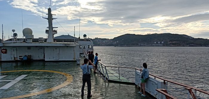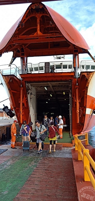 旅客陸續自船艏踏上東引 (攝影:廖晨光)