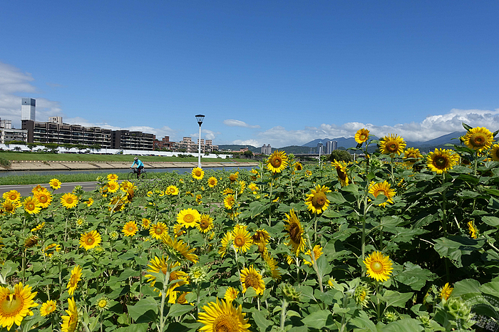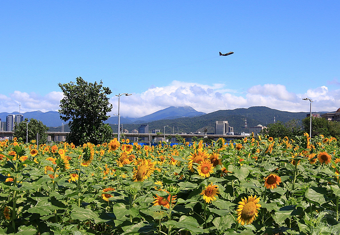 台北水利處表示,北部民眾現在不必大老遠跑去中南部,在臺北市區內就能欣賞23萬株向日葵花海,這次的向日葵花海相當壯觀,面積達6600平方公尺(約2000坪),相當於15個標準籃球場大,是去年向日葵花海面積的1.8倍,一旁有基隆河岸相伴,再加上鄰近松山機場航道範圍,幸運的話,還能捕捉到飛機飛越水岸花海的瞬間美景!