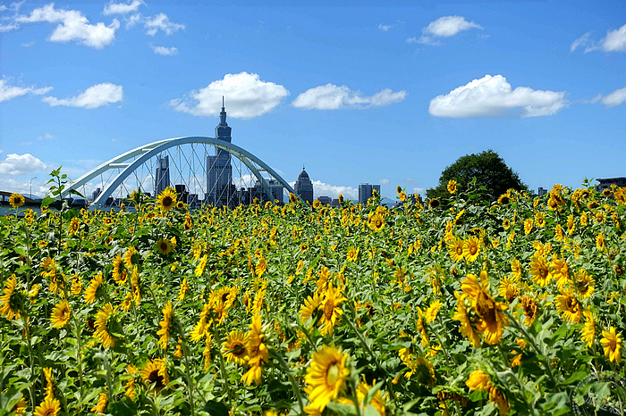 向日葵具有正向積極的意象,再加上花朵碩大及顏色鮮豔,深受許多人喜愛,尤其是向日葵在花田形成花海時,更是成為許多人的打卡熱點,北市水利處繼去年年初營造的向日葵花海造成熱潮,今(2018)年的秋天,再度重現萬朵向日葵齊放的感動,目前在彩虹河濱公園在6,600平方公尺花海(將近2000坪),共有23萬株的向日葵迎風搖曳展姿、熱情綻放!最佳賞花期間自即日起至10月上旬,而中秋佳節即將登場,在大台北地區的民眾,不妨至台北的彩虹河濱公園,日賞花遊、夜賞月趣!
