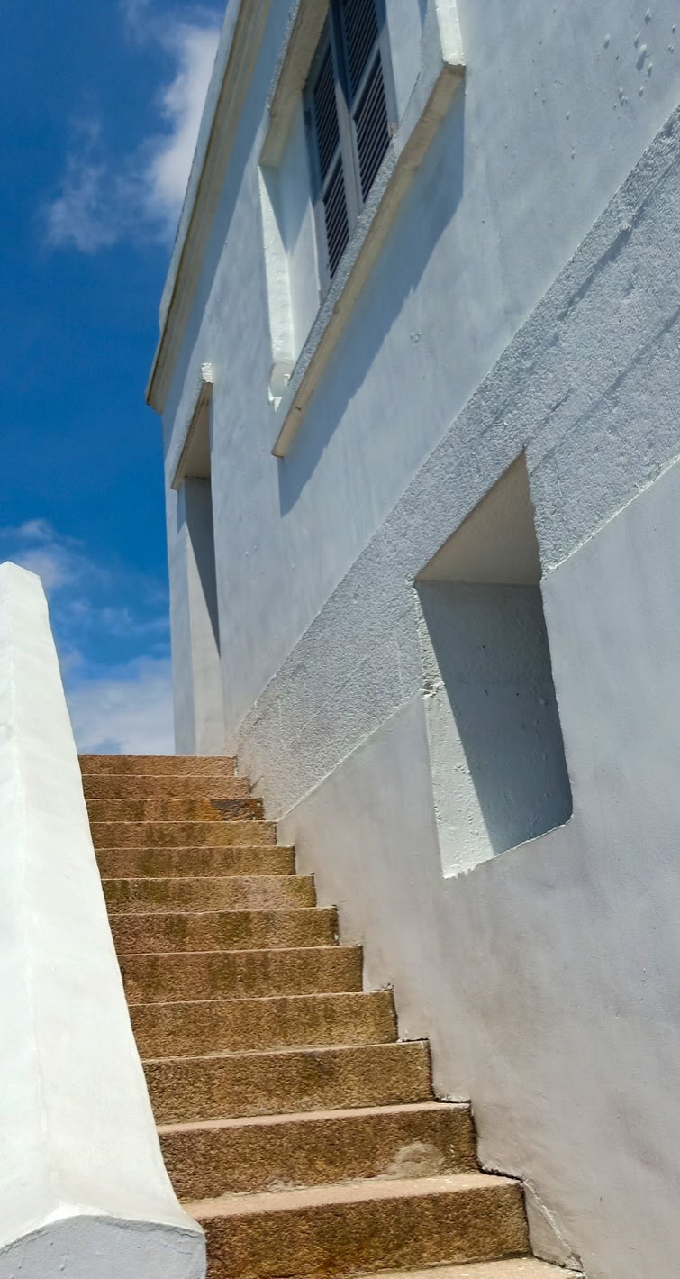 白色圍牆樓梯串起了東引島燈塔的浪漫 (攝影/廖晨光)