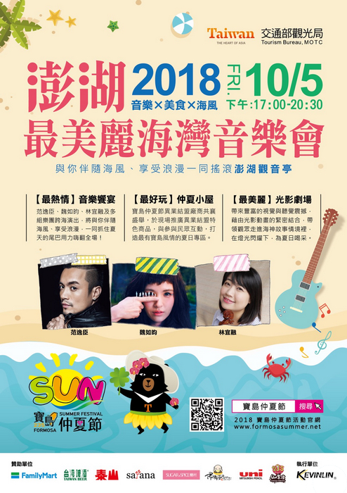 相關「2018寶島仲夏節Formosa Summer Festival」活動訊息請至活動網站(http://www.formosasummer.net/)查詢。