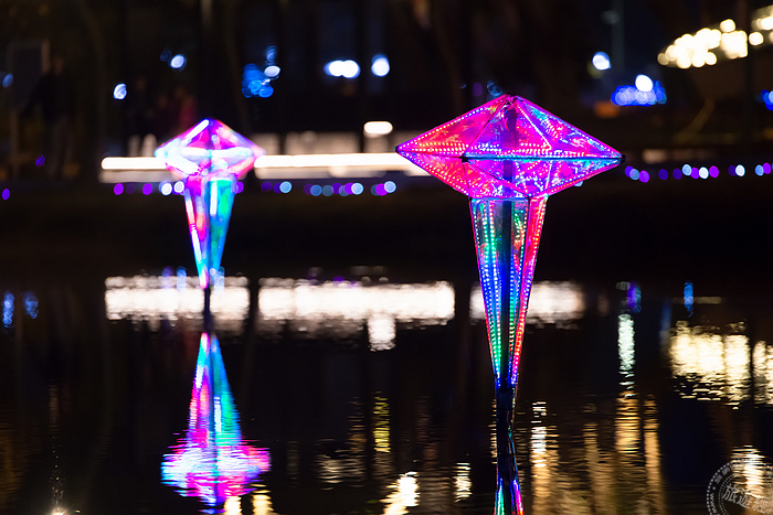而值得一提的是──今年文化局再度邀請法國藝術家團隊Groupe LAPS 參展月津港燈節,作品「Keyfremas」曾經在 2017 月津港燈節廣受大眾喜愛,今年更將帶來從未發表過的全新創作「THE FROGGS」,為呼應月津港場域特色及現況環境,藝術團隊特別規劃水上舞臺,由 48隻燈管人呈現10 位演奏者的動態,並透過互動裝置設定,在月津港水域上演一場別開生面的樂團演出!除此之外,也邀請周定賢藝術團隊於靠近信義路橋旁水域,規劃100米大範圍水幕光雕作品,上演一齣大型光雕劇場!