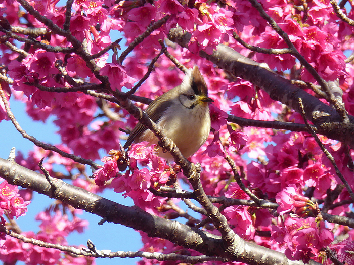 冠羽畫眉與山櫻花