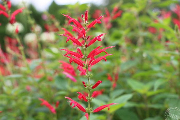 因葉子帶鳳梨般香味而得名的鳳梨鼠尾草,紅色的小花十分可愛