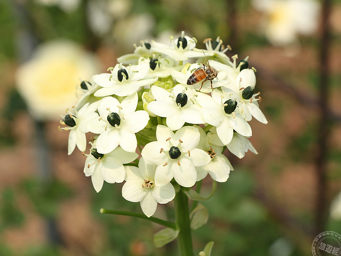 花博公園新生園區展出的「春季玫瑰展」將於4月8日截止,民眾除了欣賞玫瑰爭「美」外,事實上與玫瑰相伴的花卉,也有不少,如:鳳梨鼠尾草、麥桿菊、彩葉草等,其中還有一種花卉的花朵從翠綠、嫩綠到皎白,層次豐富迷人,尤其挺著長又直的莖,頂端開著放射狀白色小花,包圍深綠色蕊心的是六片白色橢圓形純白花瓣,宛如一頂花冠,風格獨特,而且它還有個美麗的名字叫做「伯利恆之星」,各種花草植物伴隨著的玫瑰,也為玫瑰展添色不少!