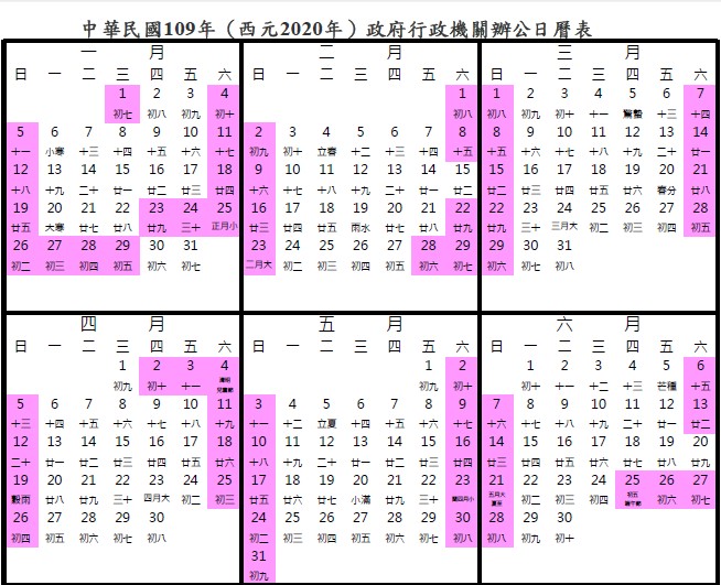 人事行政局明(2020)年公布 將有6個連假含春節7日
