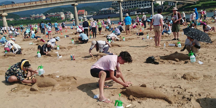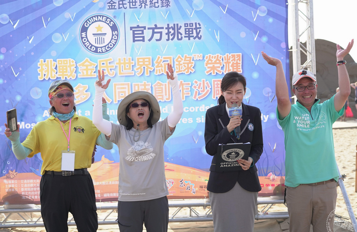 2019福隆國際沙雕藝術季,日前(15日)挑戰金氏世界紀錄活動。主辦單位東北角暨宜蘭海岸國家風景區管理處與福容大飯店以東北角常見的「瓶鼻海豚」為沙雕作品主題,號召310位「有美術及雕塑背景」及「對美術有深厚興趣」的民眾、學生參與,在沙雕師帶領下,完成310座瓶鼻海豚,合格座數也達287座,成功創下「全世界最多人同時創作沙雕」的金氏世界紀錄,現場民眾圍觀見證!