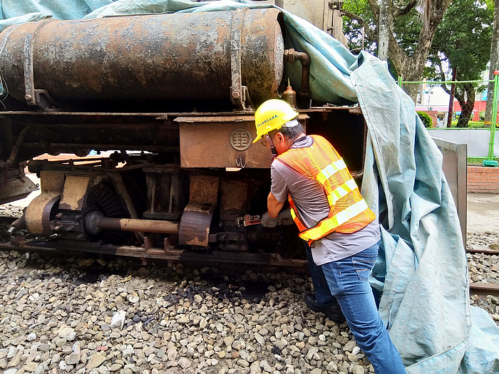 只是時隔44年,SL-21蒸汽火車成了蜂窩,除了清除外,為了順利進行阿里山之SL-21蒸汽火車吊運作業,林鐵及文資處於7月17日即派員先行拆除傳動軸,並整理潤滑車軸動力機件,利於放置軌道後,以降低與火車編組運轉之行走阻力,並保護蒸汽汽缸。SL-21火車空車重約為25噸,但考量安全及避免破壞公園相關設施,出動200噸級大吊車及數輛拖板車,搭配林鐵及文資處事前利用原有鋼軌所製成之專用吊架,歷經2個多小時作業,終於吊運至維新路平交道上。