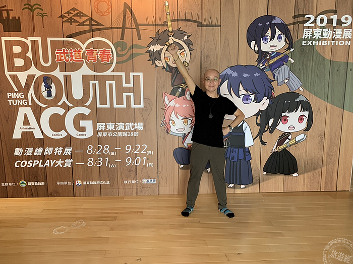 屏東縣政府文化處為了活動的精彩性,邀請屏東大學文創系教授,也是在地知名的漫畫家張重金老師來策展!2019屏東動漫展活動名稱為《武道青春、熱血屏東》,配合剛修復完成的屏東演武場為展演場域,以「劍道」為主題,邀請了REI、耀月、米奇鰻等16位年輕的CG繪師,從在地的角度,連結國內14位知名漫畫家等人同場展出。
