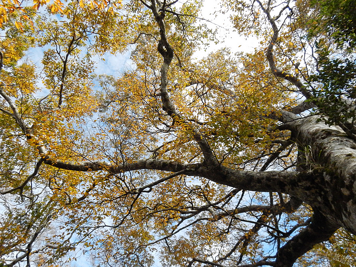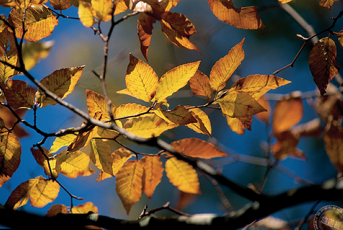 而且山毛欅四季皆有不同之美,春天時滿樹新綠,充滿生氣;夏日之際綠意盎然展現葉與光的交錯時「光」;秋葉換衣之時,金黃燦爛譜出動人詩篇,高唱「大約在冬季」時,有時銀色世界,有時展滄桑蕭颯的線條畫作!