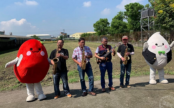 胡俊雄區長表示紅豆播種是每年紅豆節重要的開端,近幾年來大寮區公所全力推廣紅豆節活動,成功將具有產銷履歷的大寮紅豆推上世界舞台,區內的輔英科大、中山工商、各社區及勞工局訓練就業中心等單位也積極研發各種紅豆美食,連知名的關北紅豆企業也加入推廣行列,選用優質大寮紅豆做成美味的紅豆餅行銷全台灣。長期參與大寮紅豆節公益活動的林秋芳董事長,今年不只會將關北紅豆攤位的部分收入捐贈給在地公益團體,今天也特別攜手胡區長的薩克斯風,以吉他手身分參與播種活動,他笑說「賣紅豆商品多年,第一次親自下田播種,第一次彈吉他給紅豆聽,感覺特別有意義,這也是大寮紅豆節活動深具魅力的一種特色」。