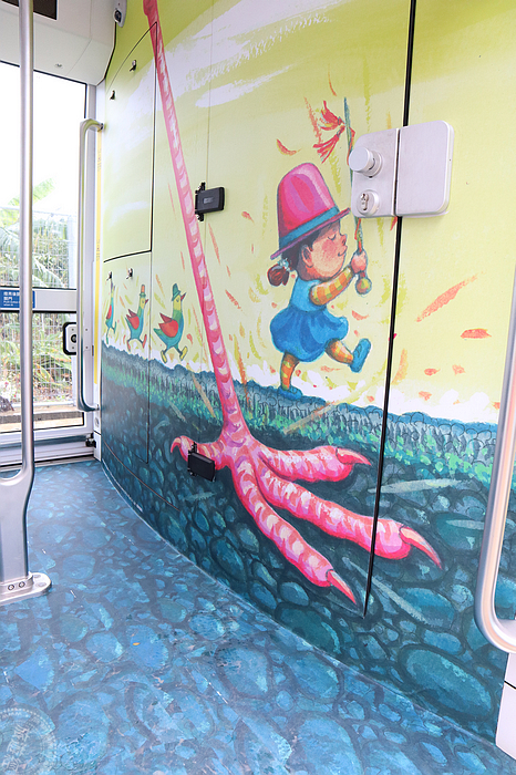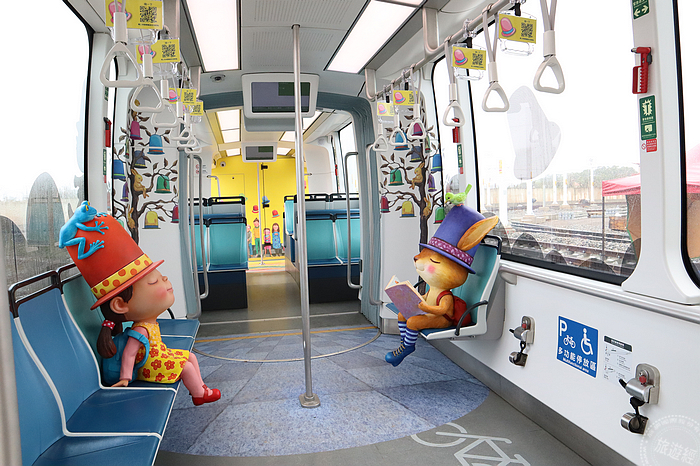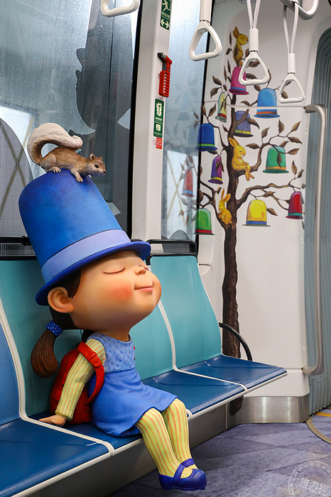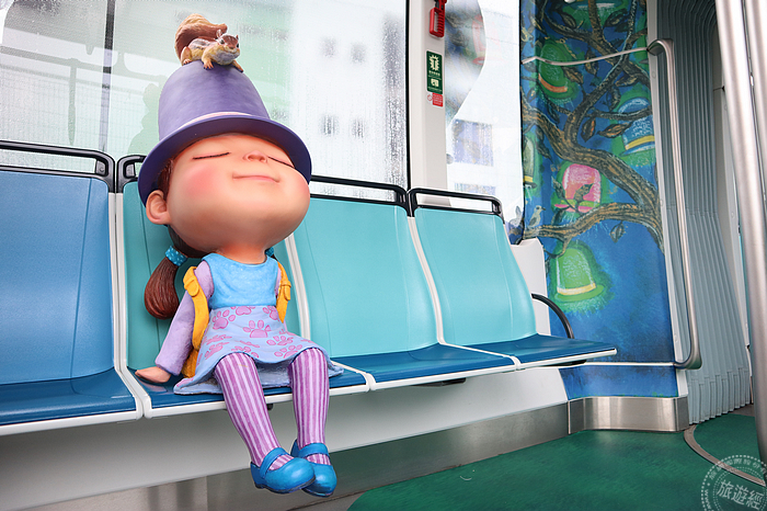 淡海輕軌綠山線,於去(2018)年12月24日正式通車,是北台灣首條輕軌路線,沿線從紅樹林站至終點崁頂站,全程7.3公里沿途共計11座車站,搭乘時間約需25分鐘,在即將通車屆滿週年之際,幾米的公共藝術作品,從車站再走入列車之中,新北捷運公司於昨(25)日辦理幾米主題列車週年主題活動發佈記者會,由新北市長侯友宜主持主題列車亮相儀式,也將幾米元素從車站走入列車之中,3列幾米主題列車正式亮相,其中在紅樹林站月台,每日還有固定時段將安排一列主題列車停放,可供民眾拍照打卡之用!