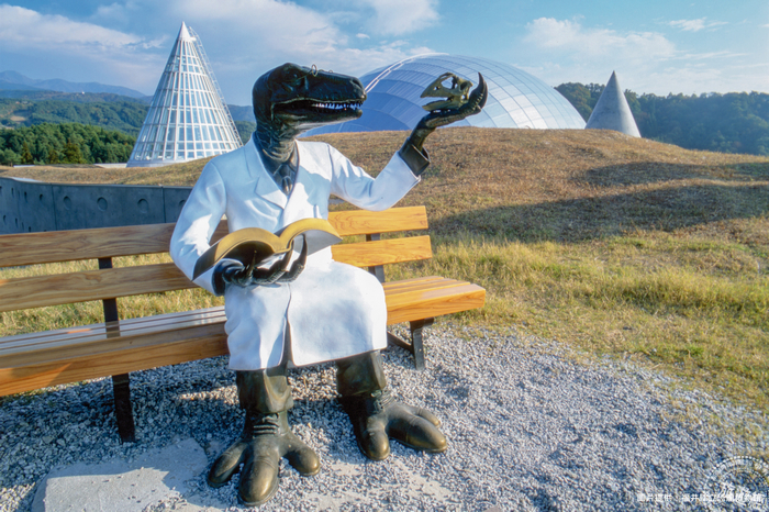 座落在日本福井縣立恐龍博物館外的恐竜博士。圖/聯合數位文創 提供。