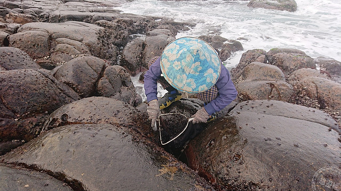 新北貢寮香蘭段漁民吳秀蓮媽媽表示,目前在海蝕平台採集到最多的海藻是小紫菜,紫菜是老天爺送給貢寮人的禮物,大家都撿得很開心,還能賺點外快貼補家用。採襭紫菜,可以徒手拔取或利用湯匙等改良自製的工具進行採集,因冬天海風強勁且礁岩濕滑,斗笠、高領衣服、手套及防滑釘鞋等防寒安全措施,成為家中不可缺少的工作必需配備,