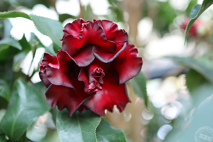 公園處花卉試驗中心主任宋馥華表示,每年茶花展均吸引大批喜愛茶花的民眾爭相前來拍照,今年特別展出較少見的深色茶花品種,花瓣以深紅色為基底,根據光影變化及觀賞角度不同,可看到不同程度的紫黑色,因此常稱為「黑色」茶花,是茶花裡相當珍貴的品種,這種暗黑花朵有一種神秘、高貴又帶點危險、魔幻的感覺,耐人尋味。