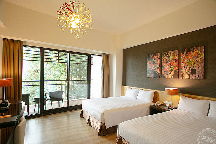 力麗哲園月潭館客房典雅舒適大片落地窗景充滿綠意