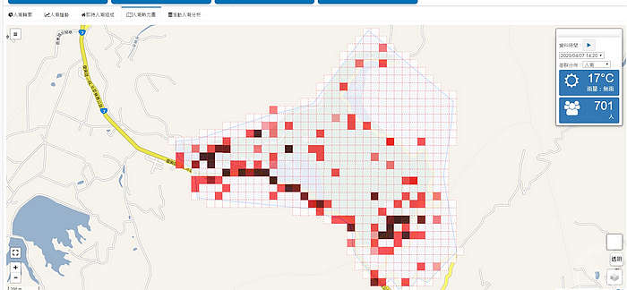 另外,桃園市政府觀旅局與中華電信合作,統計桃園包括:大溪老街、石門水庫風景區、虎頭山風景特定區、慈湖、竹圍漁港、觀音蓮花園休閒農業區、拉拉山、永安漁港、角板山、新屋綠色走廊、大溪月眉休閒農業區、三坑老街、小烏來風景特定區、羅浮、觀音濱海遊憩區、優霞雲瀑等16處遊憩據點遊客人數,桃園市政府將可在後台精確得知各個時段之人潮,進行必要之疏導工作,未來還會在桃園觀光導覽網建置「紅黃綠」燈號警訊,以人潮統計數字為基礎,呈現各景點擁擠程度,快速瞭解觀光景點現況,避免民眾到了景點卻因人潮眾多而恐有群聚感染風險,而形成快樂出遊卻需自主管理甚至得居家辦公的窘境!