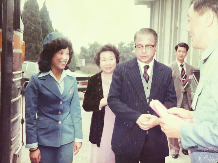 曠蘭美(左一)過去擔任金馬小姐時曾接待前省主席林洋港