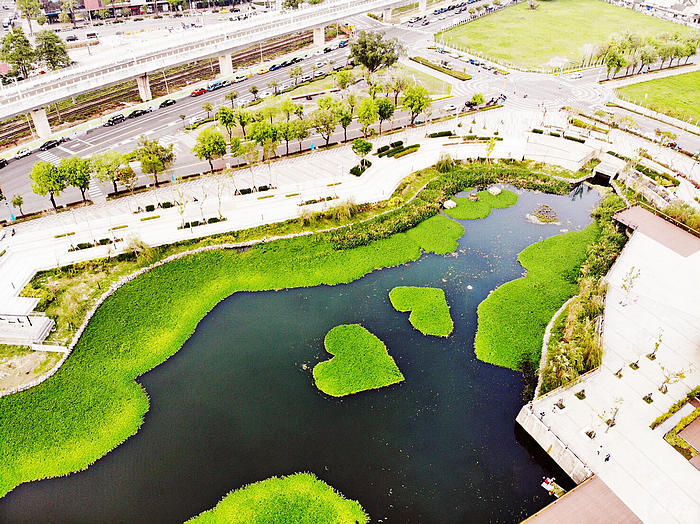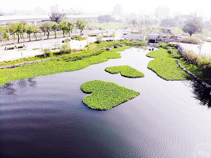 為讓景點更具特色,台中市政府府建設局於湖中加碼種植「愛心水草」,心型造型掀起搶拍風潮,湖面搭配落日與湖濱生態,加上周邊圍繞台中產業故事館、建國市場、秀泰影城、興建中的台中車站鐵道文化園區及規劃中的三井LaLaport購物商場等景點,打造生態夢幻景點。