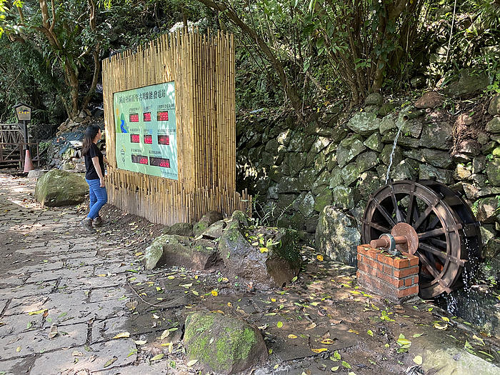 轉動的水車配合相關面板,展現低碳綠能的理念