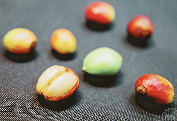 每顆「咖啡櫻桃」裡大都含有一對種子,這對種子就是咖啡豆