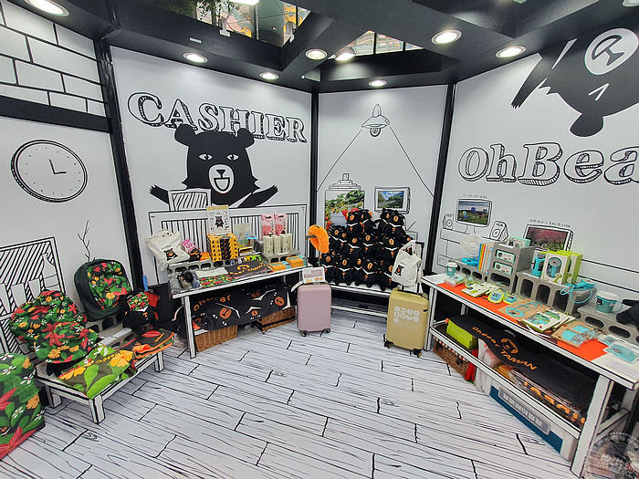 「喔熊夢工場」快閃展覽整合了與喔熊品牌合作的三芝蜜香紅茶、新北石門阿里磅紅茶等在地知名伴手禮。(攝影:943)