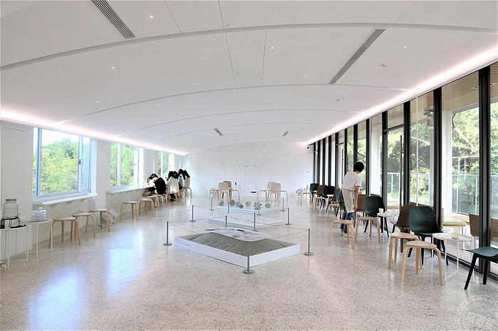 同樣位在新竹公園的「春室」,以復興玻璃為使命,開創傳統產業的新生命,一樓的Glass Studio是職人的展演舞台,旅客可以親自體驗口吹玻璃與拉絲玻璃製作;三樓的The POOL餐飲區以白色為基調,戶外區則可以俯瞰動物園,室內空間猶如一座巨型白色燒製窯爐,甜點美味、咖啡飄香,加上玻璃裝置藝術,給人一種在美術館喝咖啡的舒心感。