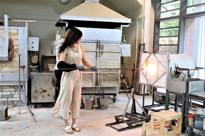 春室一樓的Glass Studio,可以體驗口吹玻璃與拉絲玻璃製作。(攝影:閻家文)
