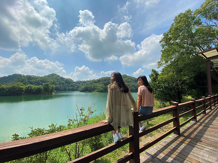 沙湖壢咖啡館依偎在寶山水庫旁,水色碧綠新清美輪美奐。(攝影:閻家文)