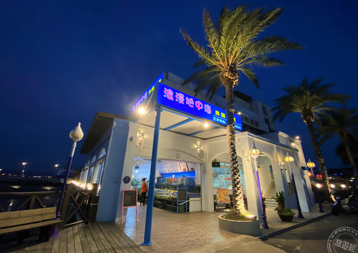南寮漁港的浪漫地中海餐廳以藍白色外牆營造氣氛。(攝影:閻家文)