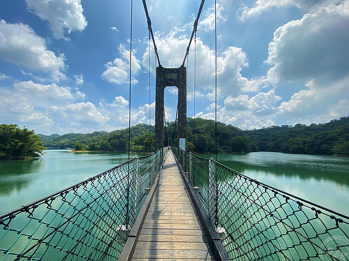 從沙湖壢咖啡館可以輕鬆散步到寶山水庫的吊橋欣賞美景。(攝影:閻家文)