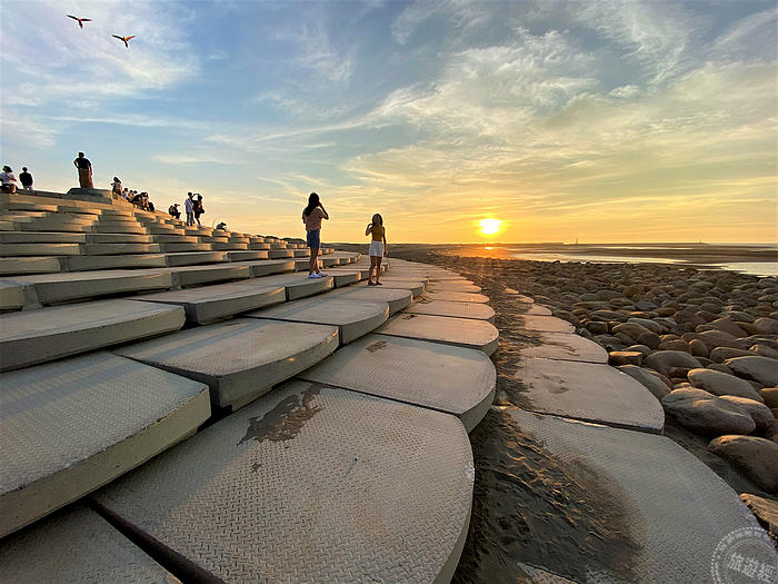 南寮漁港魚鱗天梯的夕照格外動人。(攝影:閻家文)