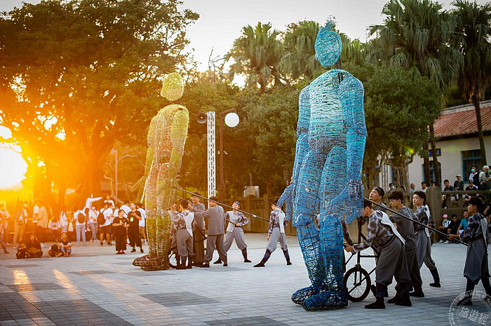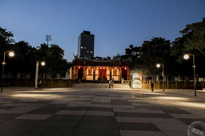 2020台灣設計展主展館「城市終端機」旁的是新竹孔廟,嘉慶二十二年(1117年)初建、1958年才遷建至新竹公園的歷史建築,寬闊廣場也是民眾遛小孩、運動的好去處。設計展期間,有從清朝到現代、台灣到世界的「世界最美教科書展」,孔廟廣場夜間有市府今年改建後重新營造的光環境,寧靜古樸氛圍,搭配柔和燈光非常適合夜間散步,此外,著名的「無獨有偶」工作室的戶外展演「山與海-巨人來了」也將在9、10日傍晚5點半至6點間帶來4.5公尺高的巨偶操作,成孔廟廣場夜晚最美焦點。