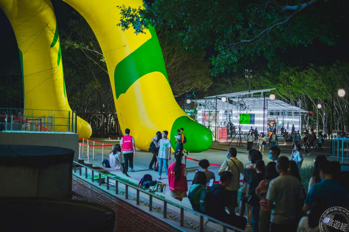 民眾在舊城內散步、尋寶,2020台灣設計展主視覺「新竹獸」以電動玩具二次元為元素,充滿童趣,分身散布在新竹市11個角落。台灣設計展期間,10月8日、9日、10日隔日皆為假日,所有場館皆延長開放至晚上八點,民眾可以感受不同於白日的光彩!