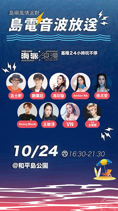 今日登場的週末島嶼電音派對,派對DJ群由性感又熱情的亞洲百大女DJ-藍星蕾Amber NA領軍,她的個人IG擁有超過160萬粉絲追蹤,另外還有同樣性感美麗的DJ VN Veena、專業度滿分的Kenny Musik等;演出歌手方面,則有饒舌歌手呂士軒、第27屆金曲獎「最佳新人獎」得主謝震廷、R&B絕美新歌姬孫尤安、「聲林之王」歌手馮玟璇、反差萌清新小帥哥說唱歌手王煜開YK,還有「情歌傳唱天后」李翊君之女,音樂新生代小才女王敏淳等,集電音、嘻哈、搖滾、抒情、R&B等各種曲風,樂風多元,而且活動均為免費入場。