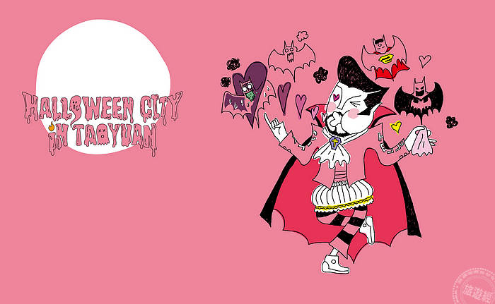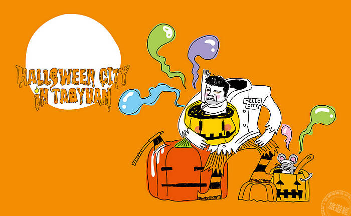 桃園萬聖城主視覺由多次獲得金犢獎、金點設計標章的插畫師Saku操刀設計,這次展現不同風格,將鬼怪呈現「邪惡無害、恐怖可愛」耳目一新的形象,以傳統萬聖節的常見色彩橘色及黑色為基底,象徵黑夜與白晝,也代表桃園萬聖城活動也有黑夜與白晝不同的氛圍變化。