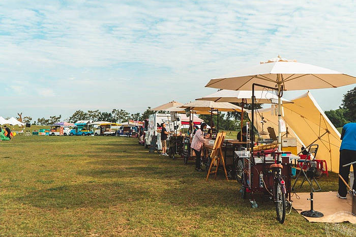 官田遊客中心於八月份開幕以來第一次舉辦野餐日,活動當日草原周邊開放民眾能自備野餐墊於草地上席地而坐,還可以於活動現場租借遮陽帳一頂,抵擋臺南熱情太陽的曝曬,租借只需繳交押金1,000元,於歸還時無損毀就能全額退回。除了能夠在廣大的草原腹地野餐外,現場也有不同品項的三輪車美食攤位,如飲品、甜點、鹹食、炸物、披薩等食物,周邊還有在地農特產商品販售,讓參加的民眾能夠體驗不同的味蕾饗宴。