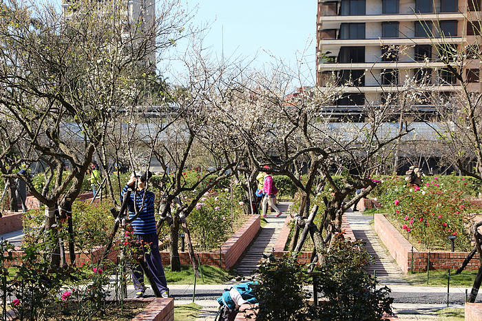 臺北市公園處園藝管理所主任賀綺華表示,士林官邸內玫瑰園園路兩旁栽植許多成齡梅樹,具其歷史意義,堅忍不拔的梅樹與蔣夫人宋美齡獨愛的玫瑰相互呼應,象徵相依相偎的堅貞愛情。梅花為薔薇科落葉喬木,株高4到10米,梅花開放時枝條無葉片,花五瓣,官邸內梅花多以素淨白色為主,遇冬季低溫及濕冷氣侯條件更適合梅花的綻放,現正逢梅樹含苞待放時節,愈冷愈開花,如古人云「遙知不是雪,為有暗香來」格外應景,無法上山踏雪,不妨至士林官邸尋梅,欣賞梅花那凌冬耐寒的姿態與梅花撲鼻清香。