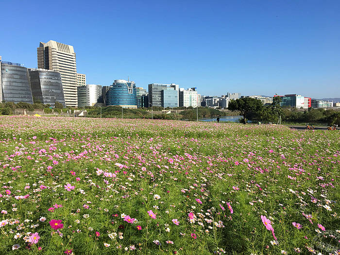 北市河濱最大花海三千坪大波斯菊浪漫盛開