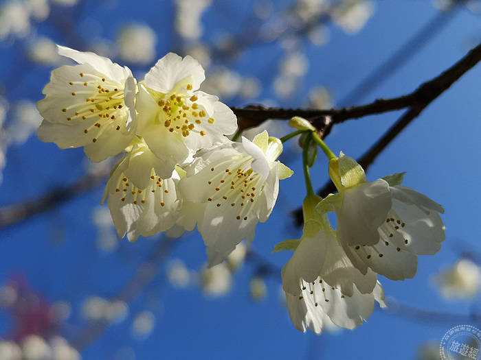 陽明山花季在陽明公園以《春櫻祈福》粉嫩登場!事實上,陽明山櫻花種類豐富,包括寒櫻、山櫻花、八重櫻到228假期附近的昭和櫻,一直到三月中的吉野櫻吹雪,陽明山櫻花紛飛的美景極其浪漫,而且台中花卉試驗所,還有少見白色櫻花,非霧社櫻,而是花朵較為群聚,且花型像山櫻花──白色綠萼山櫻花,非常迷人,不知情的民眾,一開始還以為是白梅,發現是櫻花時,特別興奮,而綠萼山櫻花也有業者稱為「福爾摩沙櫻花」!