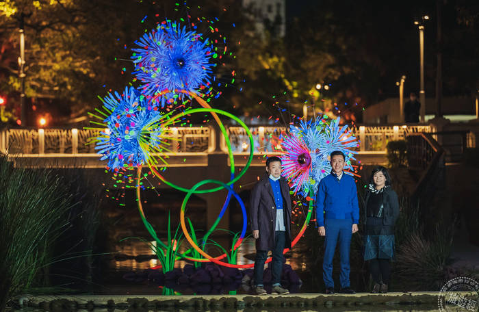 其中這一座護城河藝術燈飾「風.光.逐夢」,是以不鏽鋼、鋁合金呈現「風吹」的自然線條,創作宛如「凝結煙火」綻放在河面,深受遊客喜愛,其實作品是出自新竹子弟──「蔡筱淇」之手,旅英22年的她,與日本籍丈夫吉川公野搭檔創作,作品展出可說是遍及歐洲,更曾獲國際大獎,她在市府邀請下創作,「終於在家鄉展出,真的很感動」。