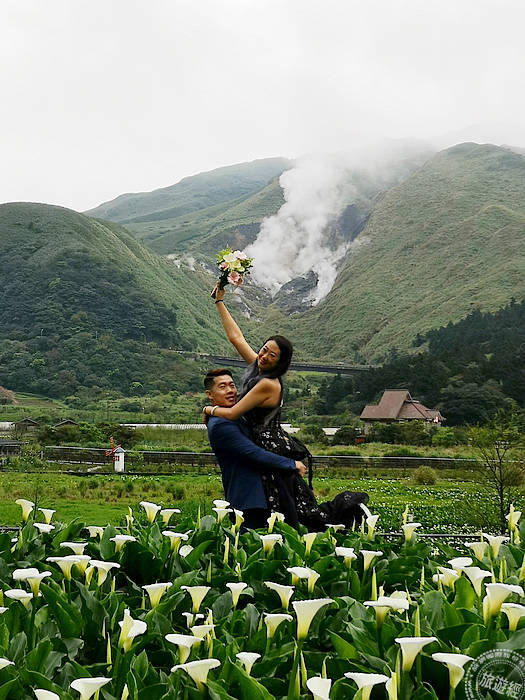 一、陽明山花季盛宴 ,「粉色」櫻花與「純白色」海芋接力綻放