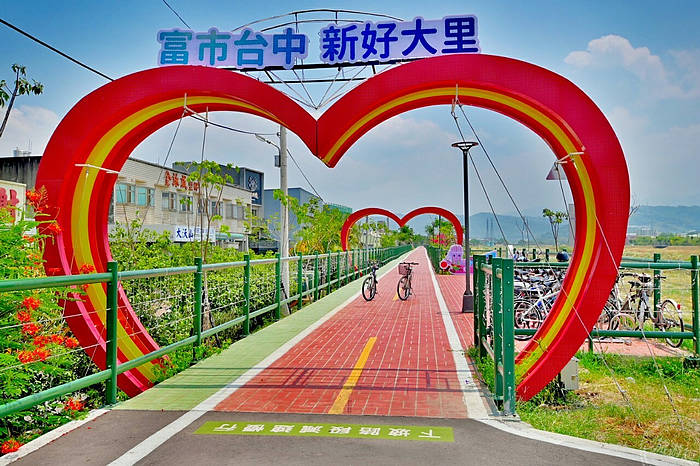 大家可在大里圖書館租借iBike,沿著臺3線往南騎,沿線騎經「Dali Art藝術廣場/東湖公園」,於中興路一段路口左轉就會看到草湖溪自行車道著名的愛心意象,用自行車慢遊的速度,來感受移動的人事物,輕掠草湖溪畔每一吋的風光,用踏實的腳步慢慢品味大里好時光!