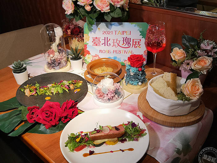 另外,若想來個「玫」麗約會,品嚐「玫食」、「美食」,鄰近晴光商圈,位於中山北路二段上的「綻1852_牛排館」,活動期間可以品嚐玫瑰法式櫻桃鴨胸$1380+10%,加價399元/199元成為套餐,另外還有玫瑰飲品$380+10%,相關美食需提前二天預訂!