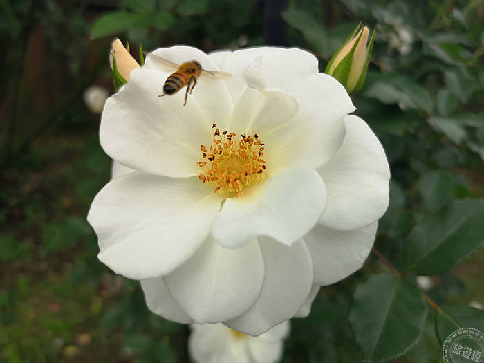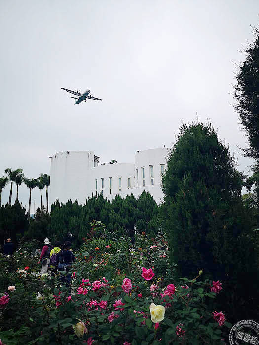玫瑰也受昆蟲的喜愛,在這飛過不只是有翅膀的昆蟲,飛機頭上飛也是常有景象(攝影:洪書瑱)