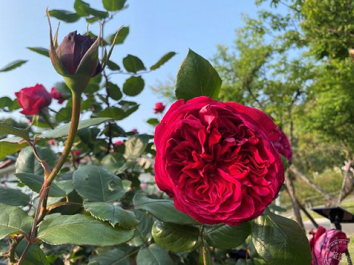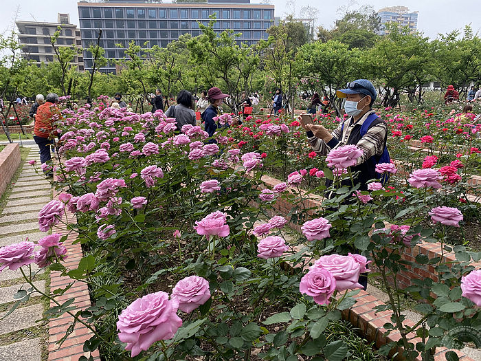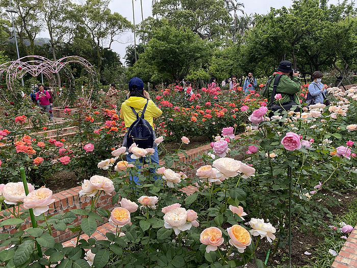 玫瑰園因季節的召喚與經過公園處員工們合宜的修剪、辛勤的施肥及病蟲害防治,飽滿的玫瑰花苞已陸續綻放,園內可以欣賞到包括:矮性花朵數繁多的豐花玫瑰品種,如來自英國的「凱麗」、來自日本的「My Rose」、「美雅子」,值得一提的有重瓣荔枝濃香味的「皇家胭脂」、花瓣如霜降牛油花的「奇蹟」、重瓣絞紋的「克勞德莫內」、淡黃滾桔邊顏色討喜的「愛與和平」、浪漫淡香紫色的「紫星」及神秘紅近黑寶石的「黑達沃拉」,而在歐式玫瑰園區更有「紅月季」、「肯特夫人」、「櫻鏡」等茶玫瑰花海,邀請民眾一同欣賞這象徵愛情的花海!