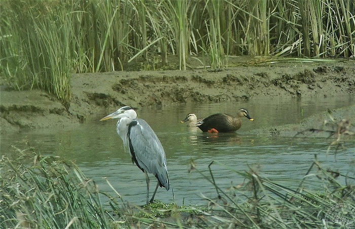 華江的蒼鷺與花嘴鴨,2020陳岳輝拍攝